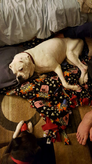 Chance has settled in well at his foster home.  He needs to gain some weight and has been neglected in his past.  Chance is getting along well with the other boxer.  This boy is so happy to be in a loving home!